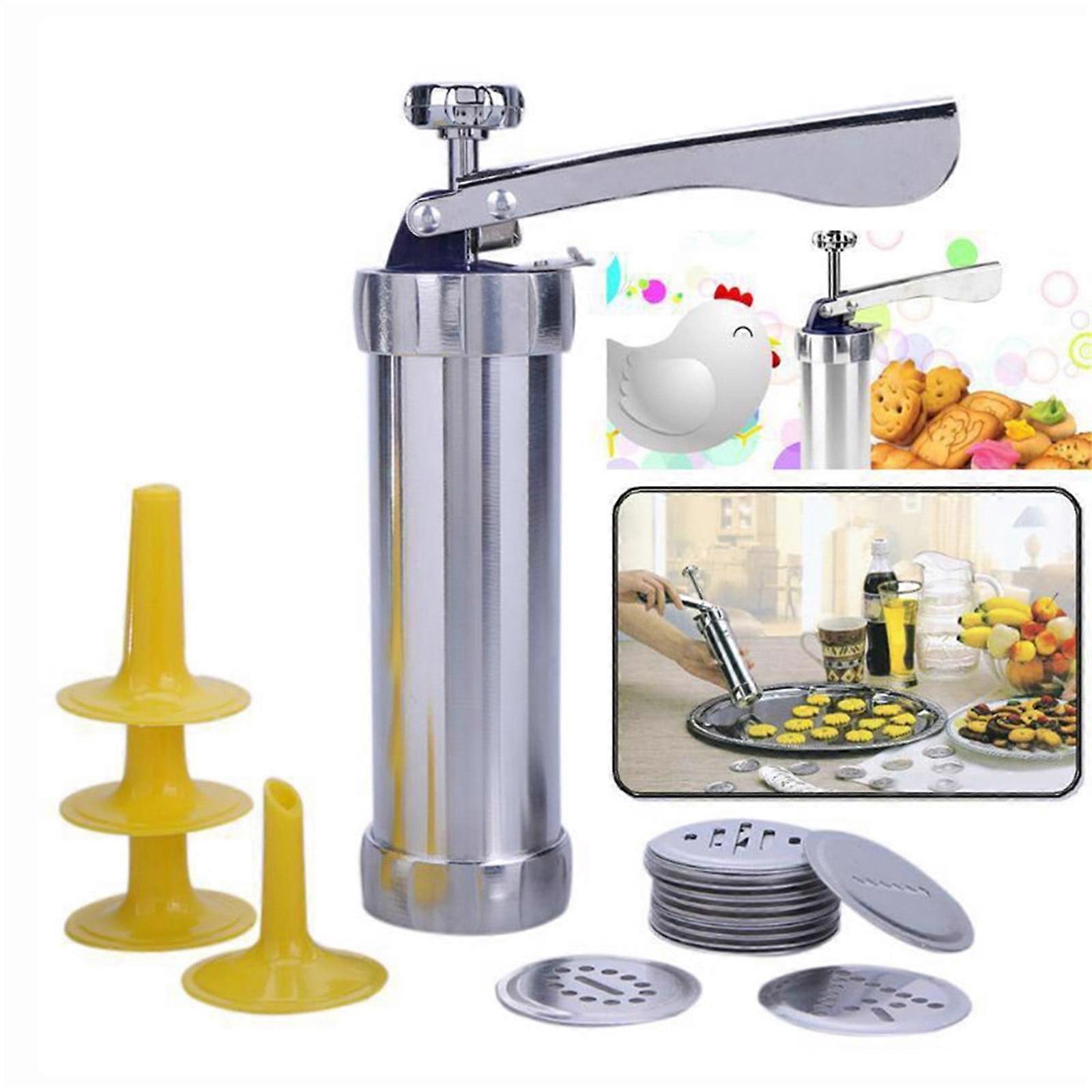 Press, Spritz Press For Baking, Stainless Steel Press Kit With 20 Icing Tips And 4 Icing Tips For DIY Maker And Decoration Features: 【Cookie PressKit】The spritz press for baking includes a stainless steel maker, 20 Discs and 4 icing tips,you can make different beautiful decorations for your cake with the stainless steel nozzle. 【High Quality Stainless Steel Press】Our press set for baking is made of food-grade stainless steel,which is and safe,and not easy to rust. 【Easy to Use Press 】Fill the dough into the press,cover the discs and screw the nut, theout,then you can press your cookies.You can easily adjust the size of the cookies with the turn of a knob,great for both the beginner and experts. 【Excellent Press design】:Ergonomic design makes the curved handle grip better, and fits the palm without slipping. All the parts of the pressset are detachable, and themaker is very easy to clean. 【Ideal Gift】This is the every occasion,it can be given to baking lovers or used at Christmas,Easter,Birthday,Wedding,Mother's Day,Housewarming or Anniversary, Party.This decor will make baking lovers especially happy and satisfied. Product Description: Specifications: Material: aluminum + plastic Barrel diameter 5cm/1.97in, length 21.5cm/8.46in Weight: about 333g Package Included: 20* Molds 4* Nozzles 1* Mould Stainless Steel Cookie Press Spritz Baking Press Kit 20 Icing Tips Cookie Maker DIY Cookie Decoration Tool Baking Spritz Press Nozzles