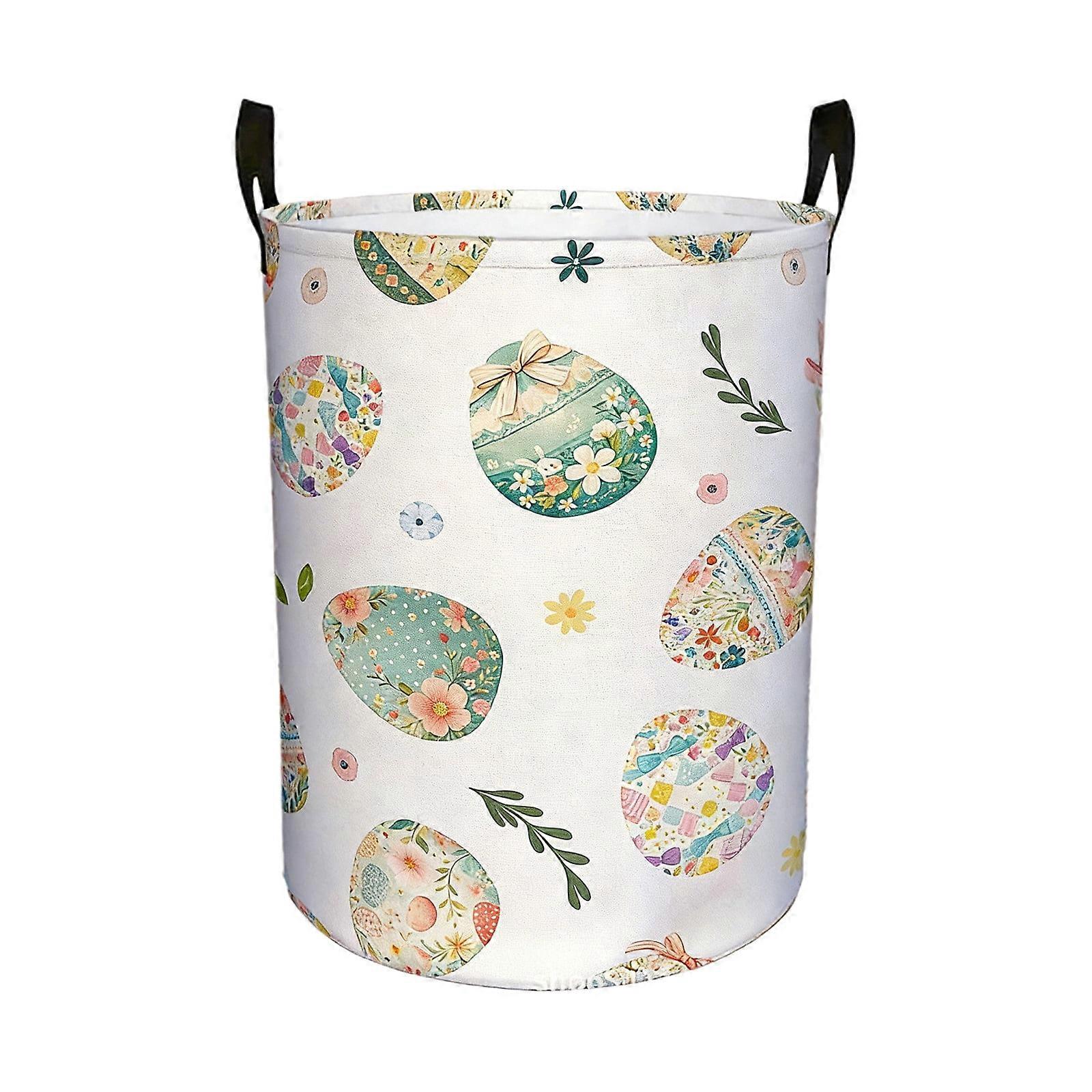 Collapsible Laundry Basket with Handle & Easter Bunnies Print – Drawstring Closure for Clothes, Toys, Blankets – Compatible with Kids’ Bedroom &