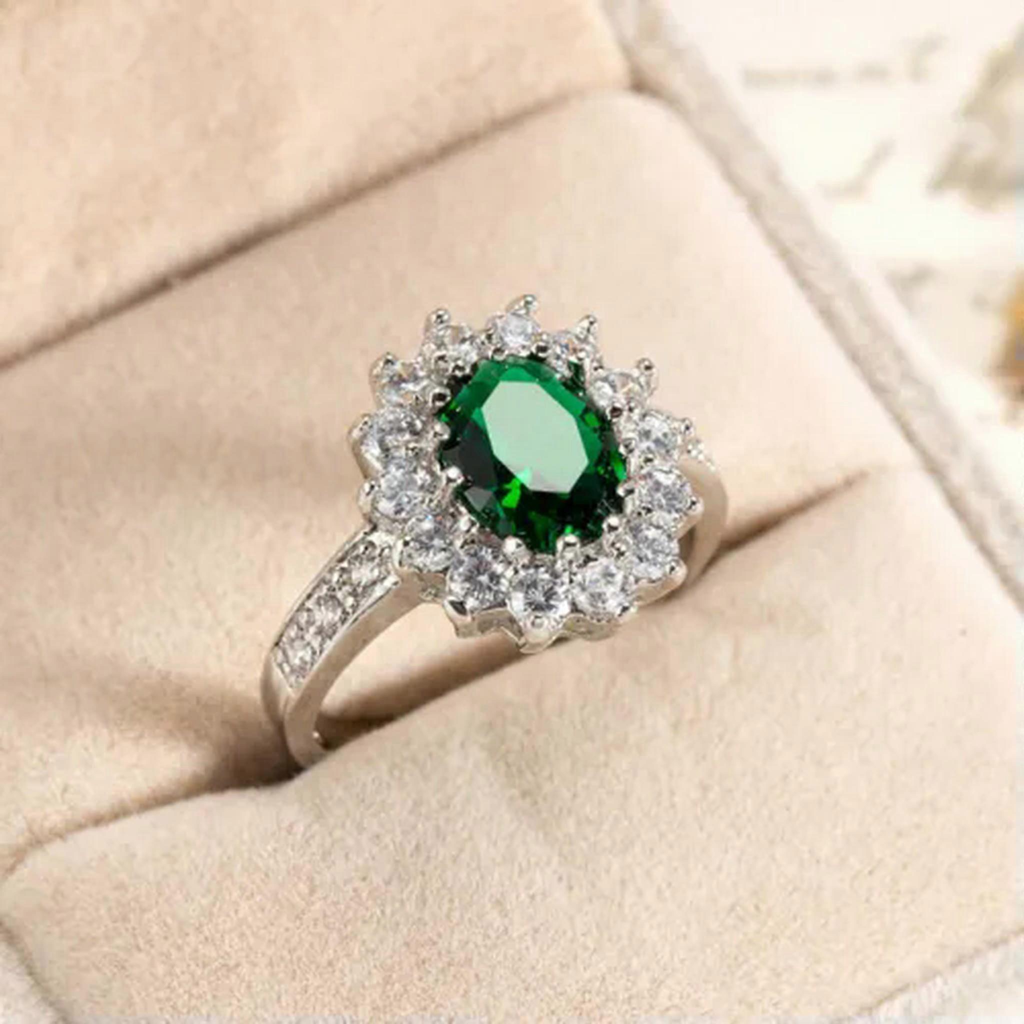 Green Crystal Zircon Stone Rings 925 Sterling Silver Ring Women Flower Rings-8#