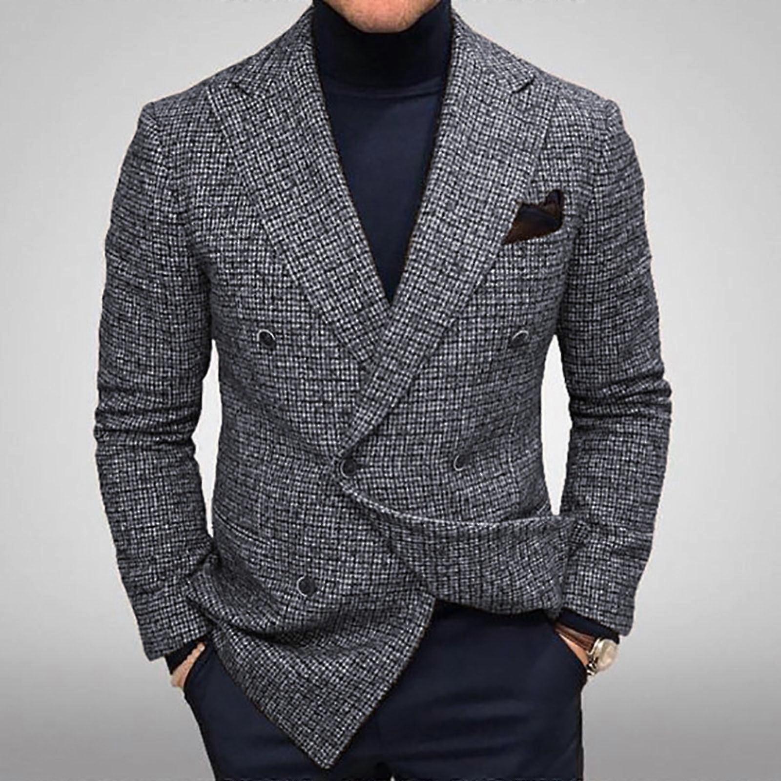 Men's Herringbone Tweed Blazer Jacket – 2-Button Slim Fit, Wedding/Groomsmen/Prom, Casual or Business, Compatible with Standard Sizes