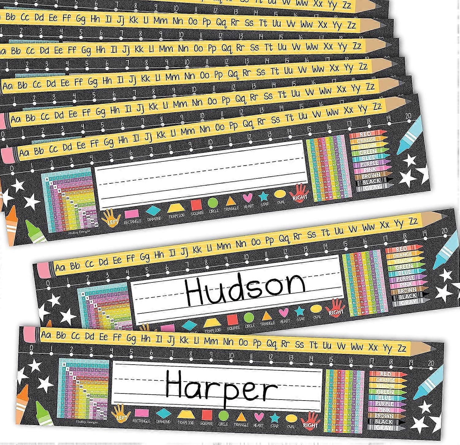 60 Colorful Desk Name Tags (12x4), Traditional Manuscript, for Classroom Learning – Compatible with Handwriting, Alphabet, Numbers & Colors