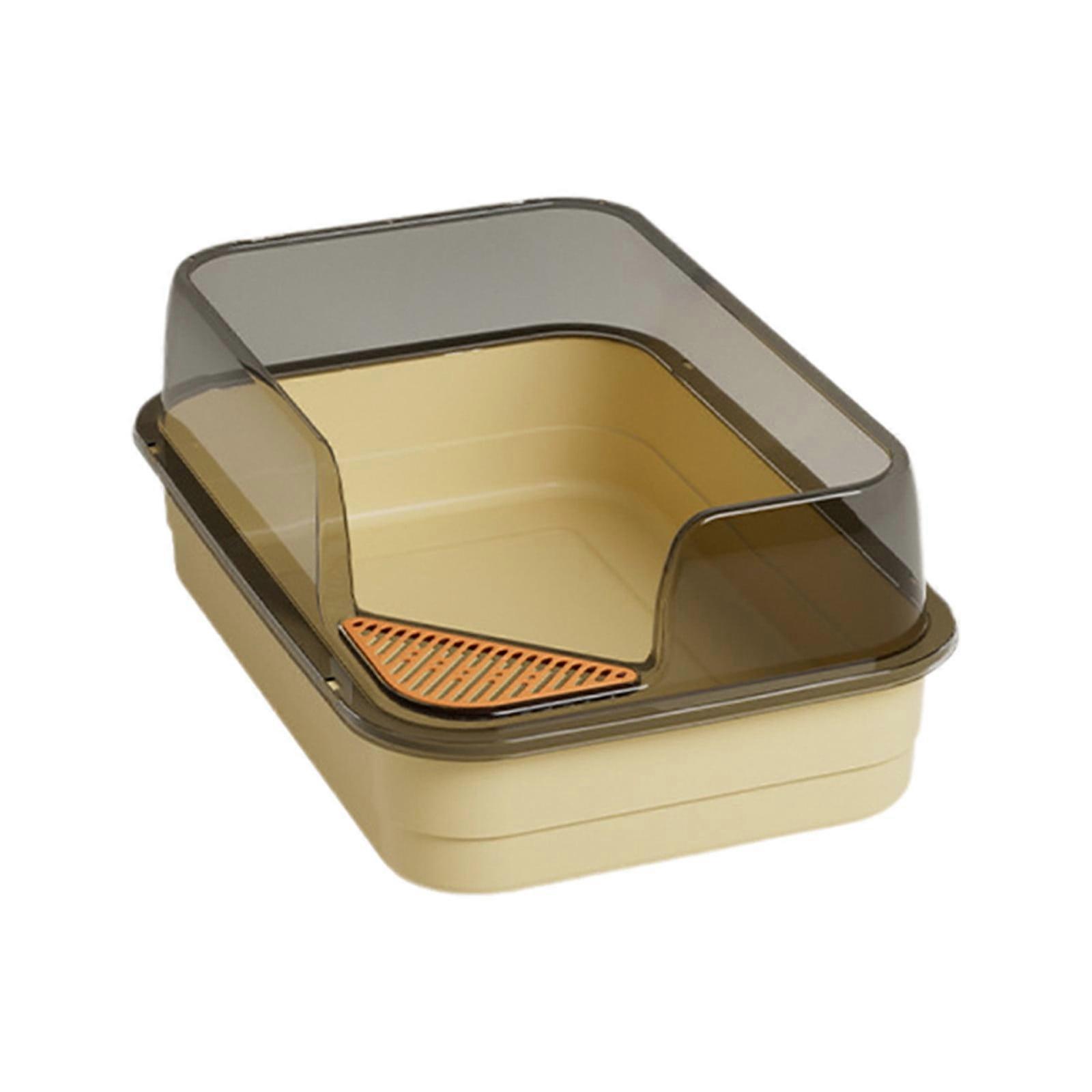 Yellow Semi-Enclosed Cat Litter Box with High Sides, Splash-Proof Design, Shovel – Large, Easy-Clean, Durable Plastic, for Indoor Cats