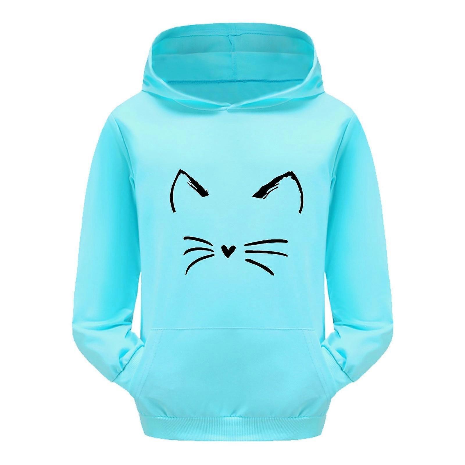 Girls Hoodie Cute Graphic 100% Cotton Long Sleeve Hooded Sweatshirt Pullover Toddler Clothes Blue, 9-10 Years / 160