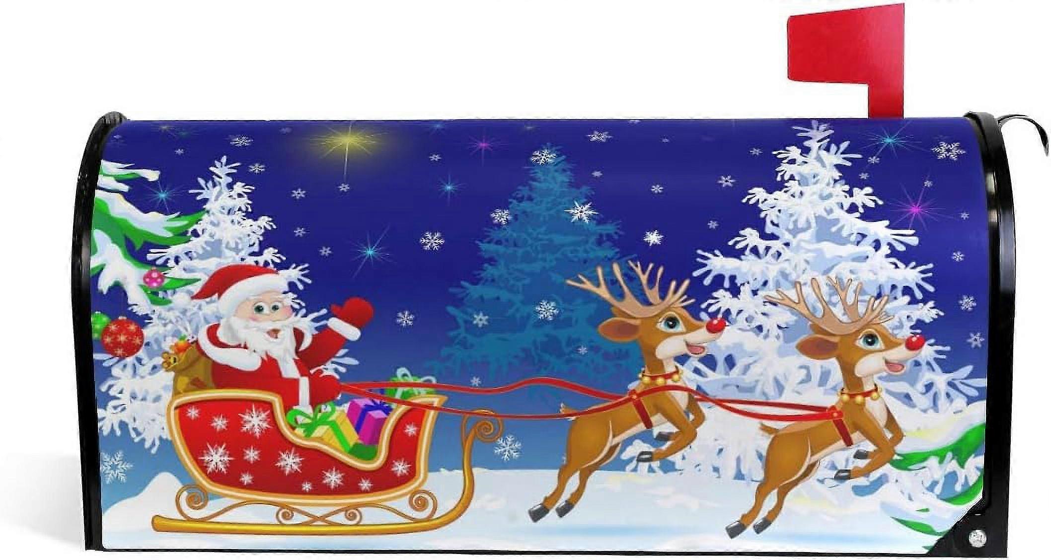 ALAZA Santa on Sleigh with Deer Christmas Magnetic Magnetic Mailbox Cover Standard Size for Garden Yard Outdoor Decorations-18 x 20.8"