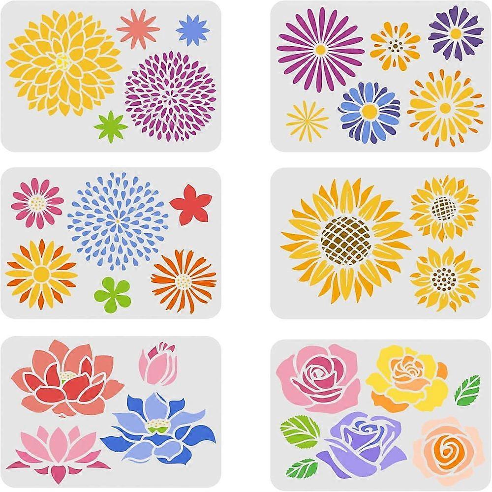 6PCS Flower Stencils Template 29.7x21cm Plastic Lotus Sunflower Rose Drawing Painting Stencils Daisy Chrysanthemum Pattern Stencils
