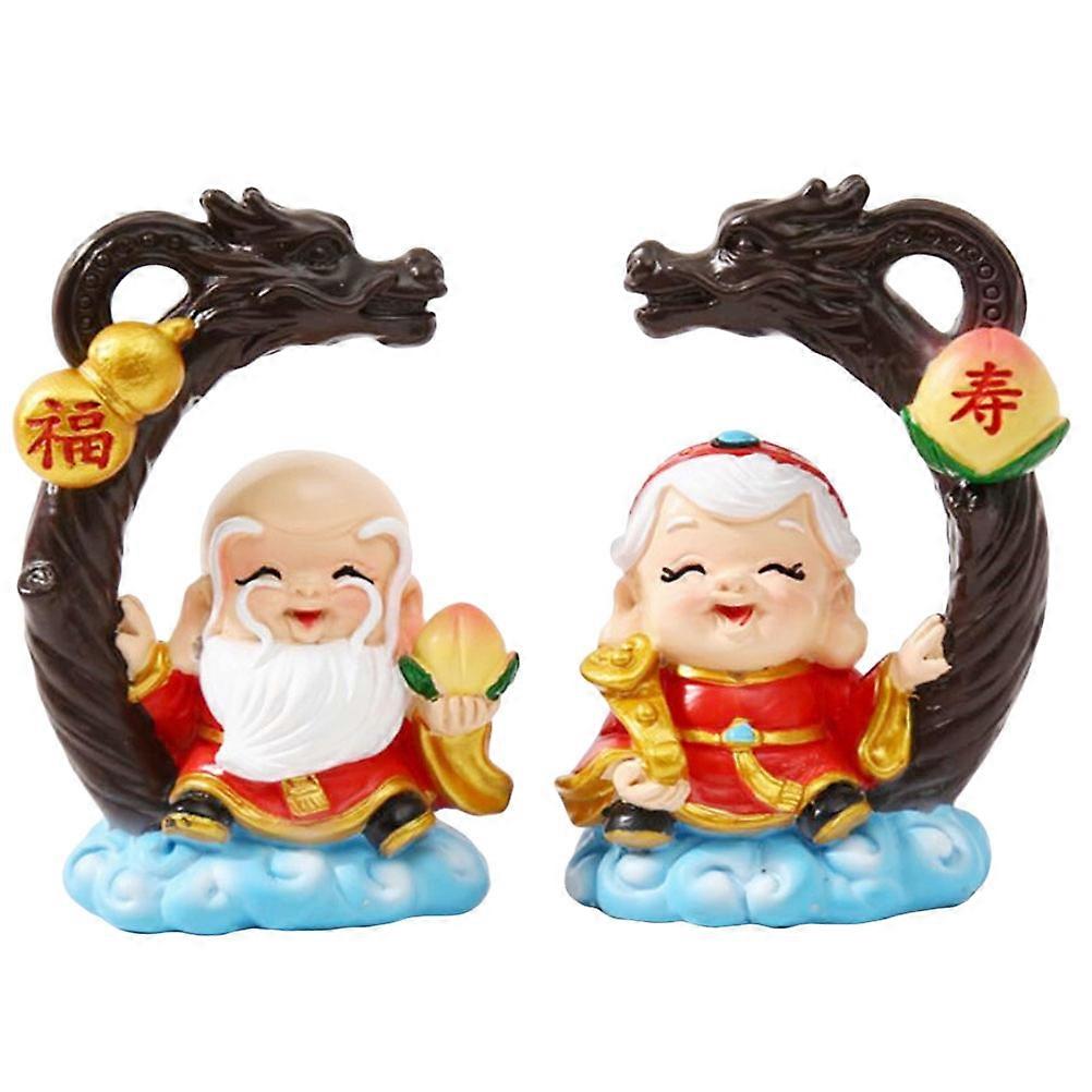 Grandpa Grandma Longevity God Cake Decoration for Party Centerpiece 2Pcs