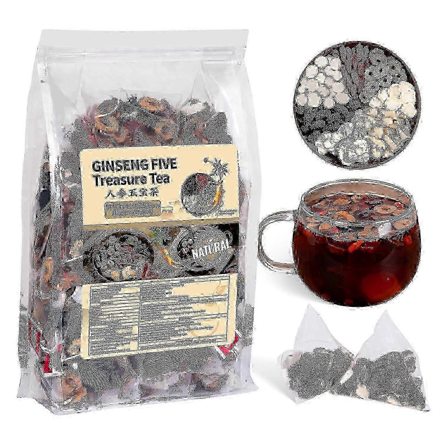 Organic Kidney Tonifying Ginseng Five Treasures Tea - Natural Detox Herbal Infusion for Men & Women