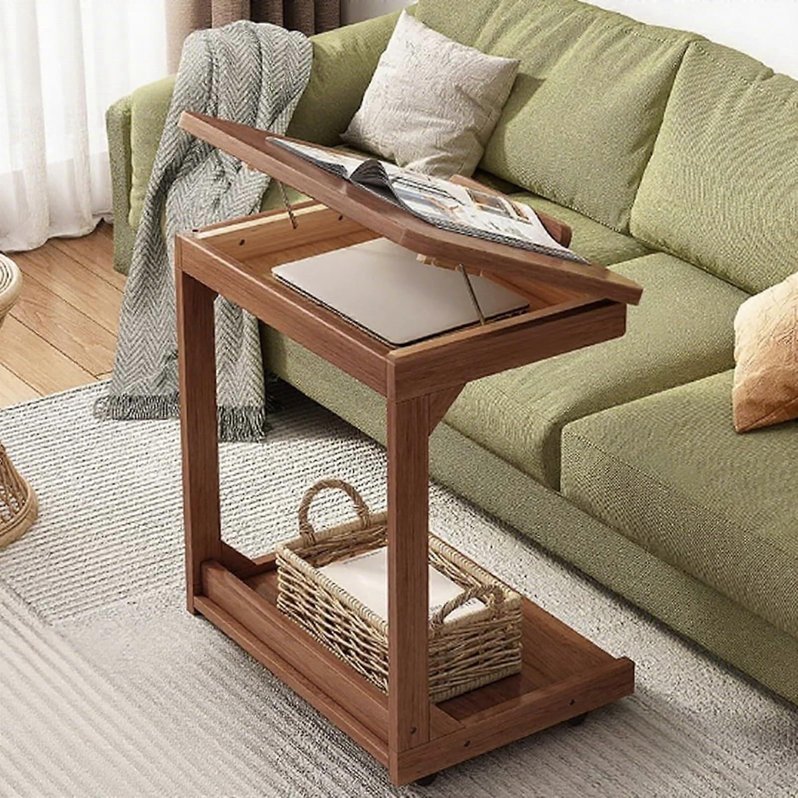Brown Overbed Table with 360° Wheels, Adjustable Rolling Desk with DualLayer Storage for Home and Hospital Use