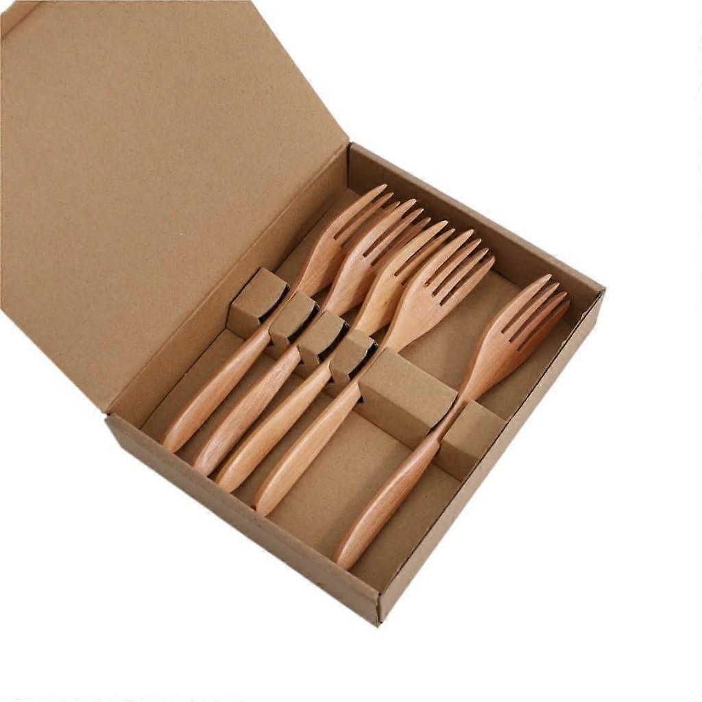 Wooden Spoon Set 5pcs Creative Wooden Fork Tableware Dishwasher Safe Eco Friendly for Coffee Stirring