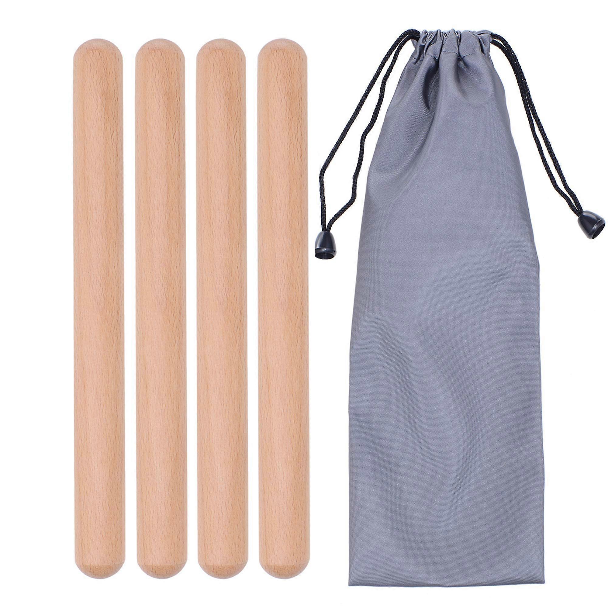 8 Inch Hardwood Wood Claves Set, Clear Rhythmic Sound Percussion Sticks with Carry Bag, 2 Pairs