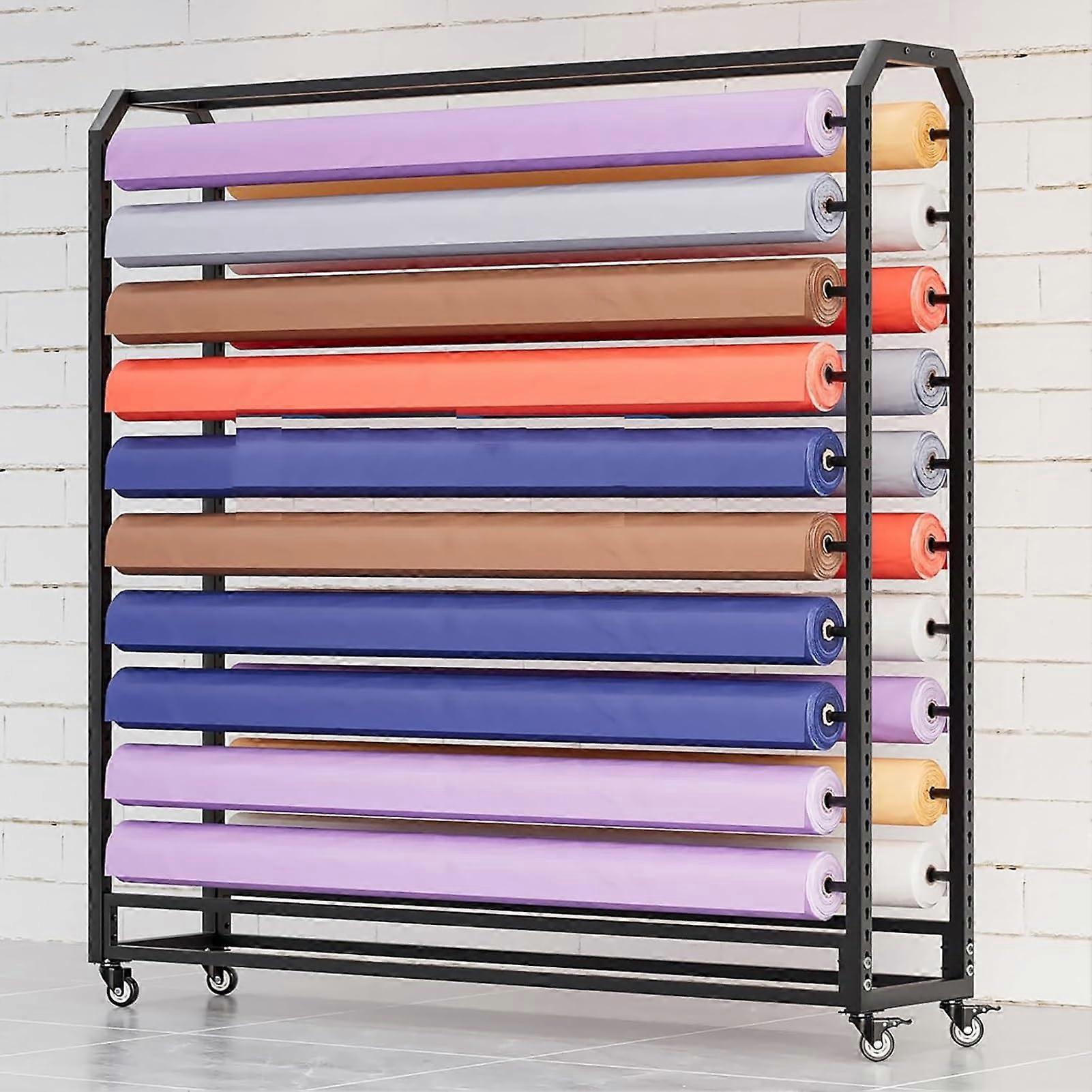 Heavy Duty Fabric Roll Storage Rack with Adjustable Rods and Lockable Wheels, 20 Rods, 145cm Wide