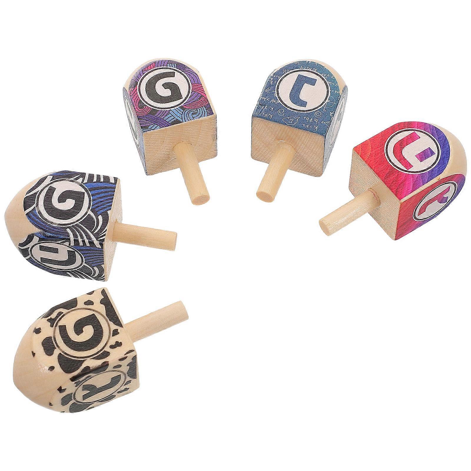 Hanukkah Wooden Dreidel Educational Toy Set for Holiday Party 5Pcs