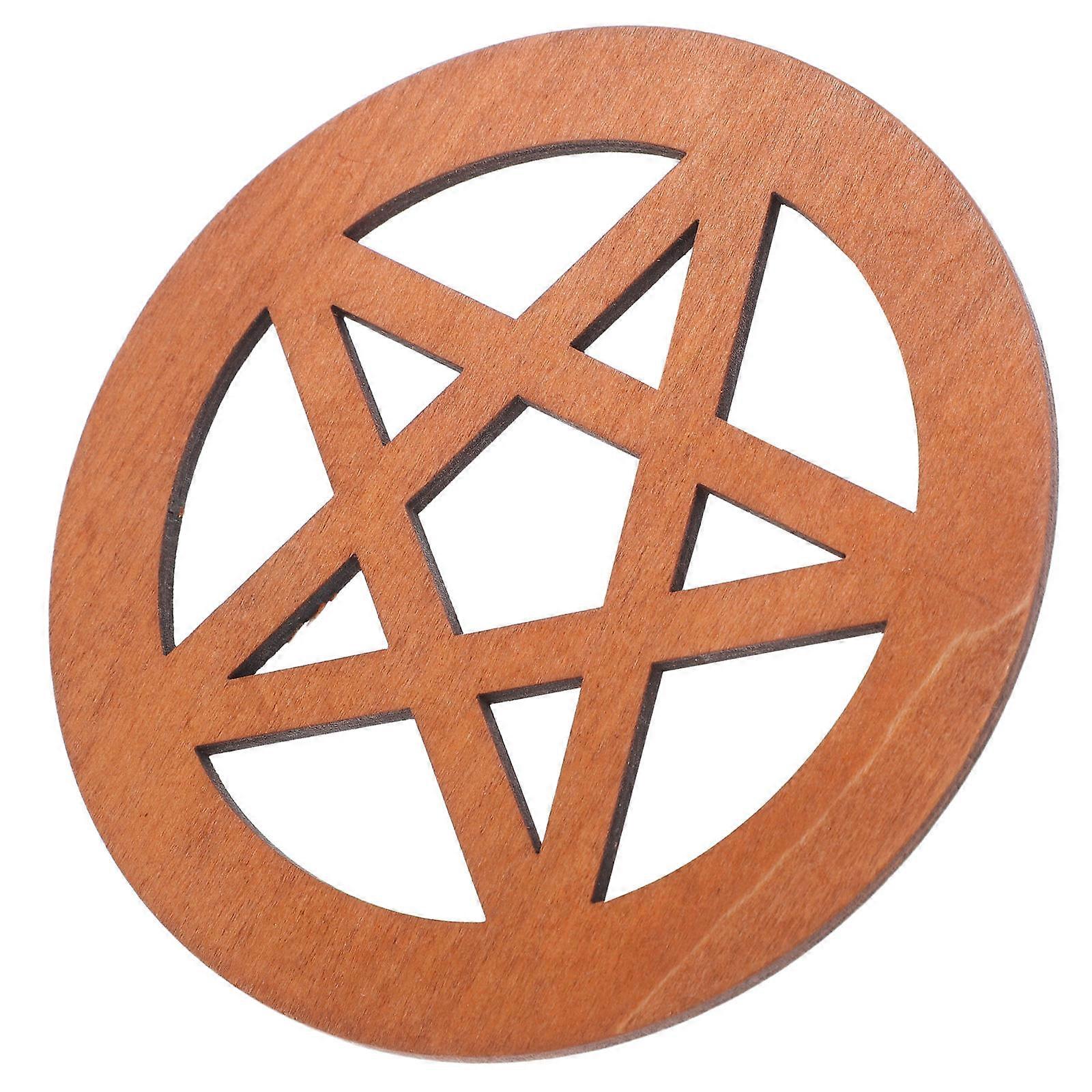Wooden Pentagram Altar Tile for Rituals Hand Carved Brown Wood Supply