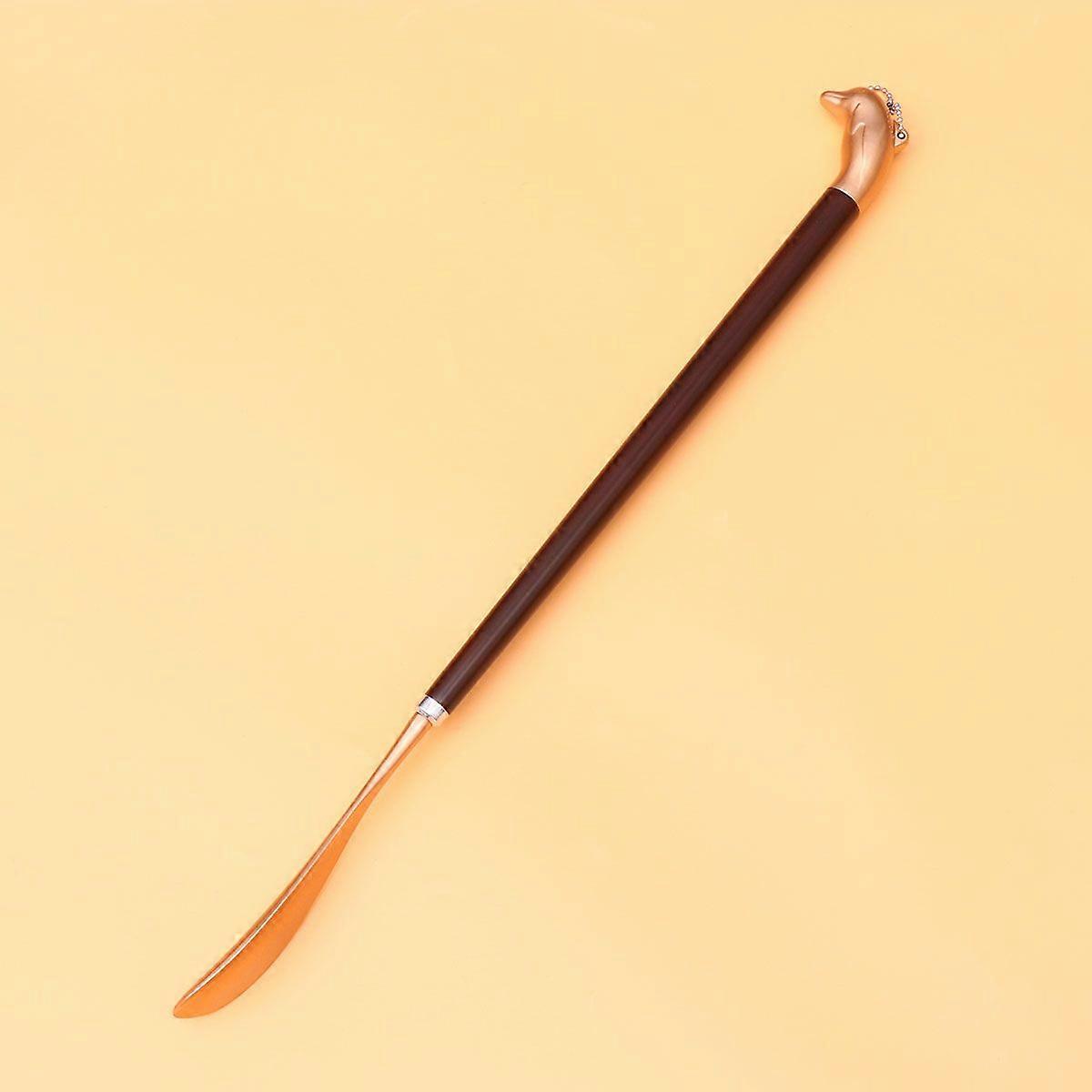 1Pc Shoe Horn Detachable Wooden Handle Alloy Shoehorn Creative Dolphin Shape Long Handle Shoe Lifter Shoe Remover (Golden)