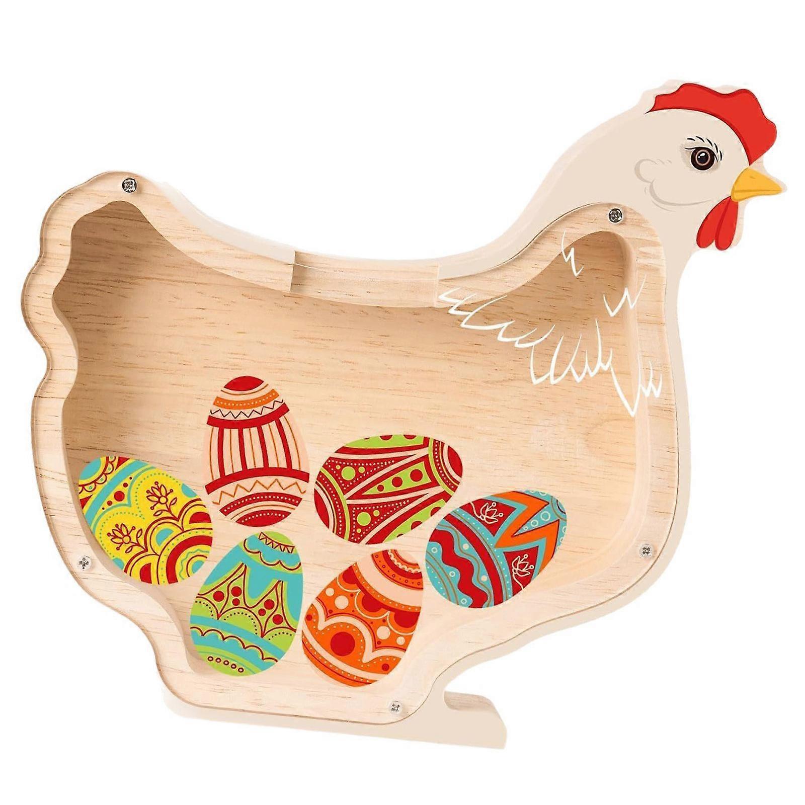 Easter Wooden Savings Box With Animal Design For Kids Storage Space For Money Saving Natural Finish Home Decoration Multicolor