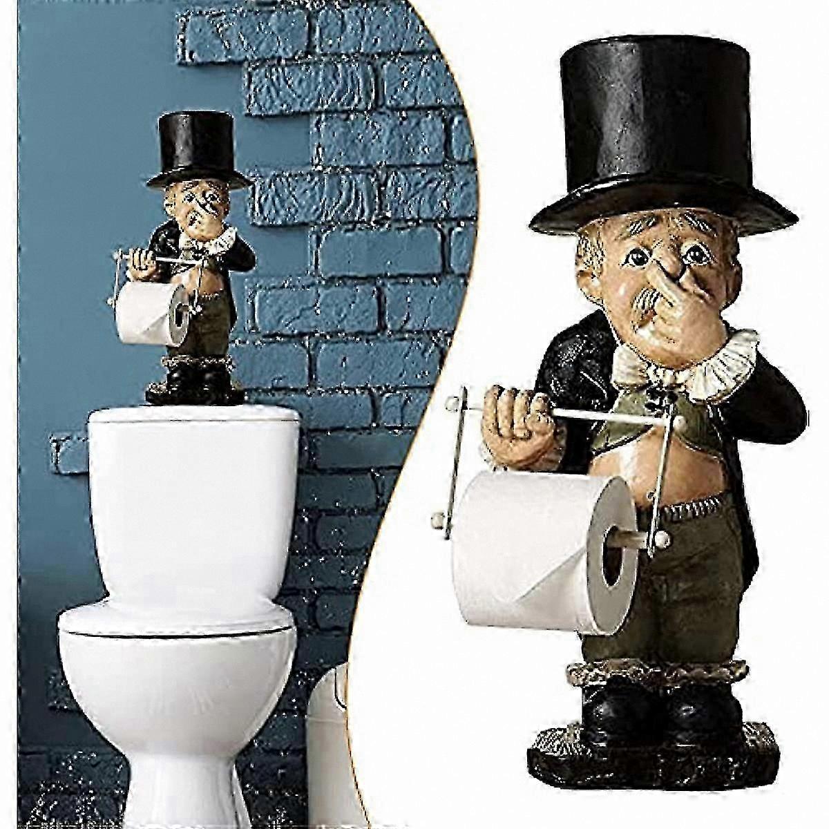 Toilet Paper Holder Stand with Butler Statue, Bathroom Decor, Pinching Nose Design