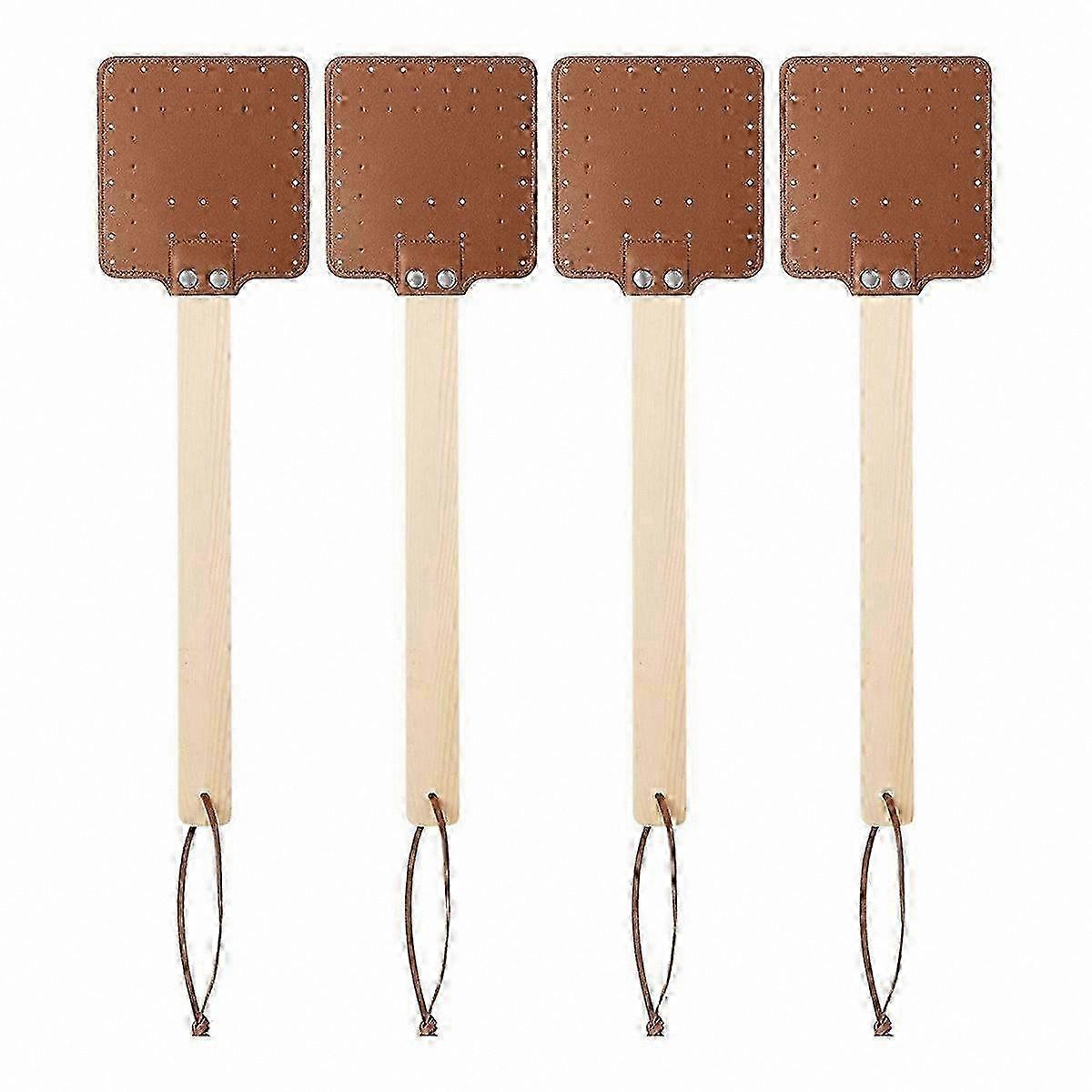 Heavy Duty Leather Fly Swatter 4 Pack, 17.3 Inch Long Handle for House & Garden