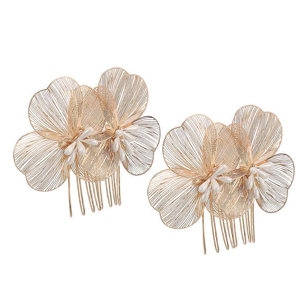 Flower Hair Comb Clip Golden for Wedding Use 2Pcs Vintage Bridal Hair Pins