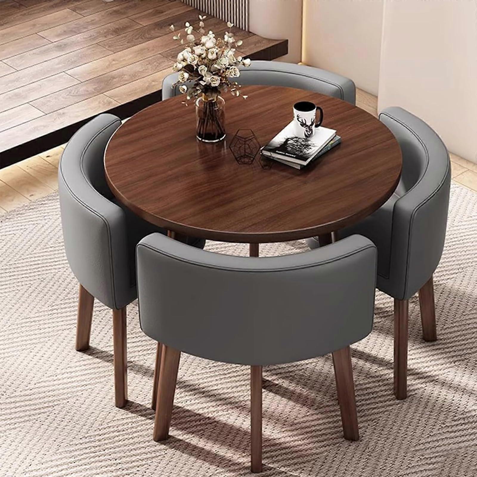 Small Conference Table with 4 Chairs, Round Dining Table Set for 4, for Home and Office, B