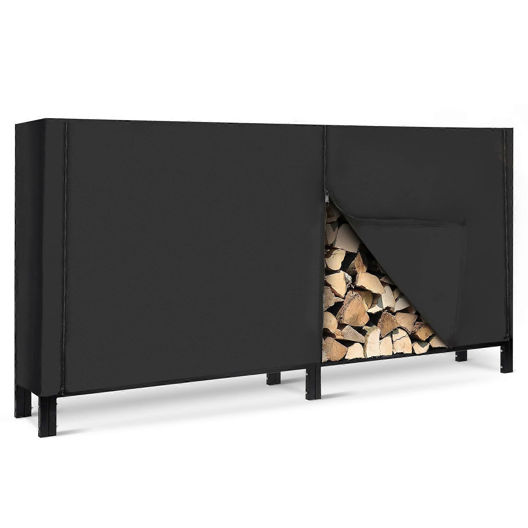8ft Firewood Rack Cover Heavy Duty Waterproof 600D Oxford Outdoor Wood Rack Cover Black