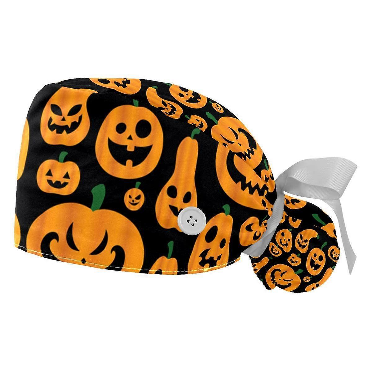Surgical Cap with Buttons for Masks, Bouffant Scrub Hat for Long Hair, Adjustable Elastic Fit, 2 Pack