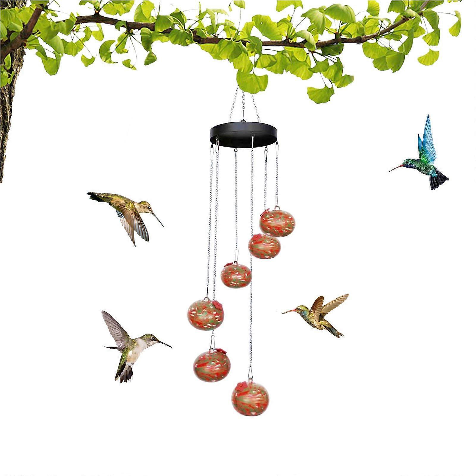 Glass Hummingbird Feeder with Decorative Wind Chime, Bee Proof Outdoor Garden Hanging Design