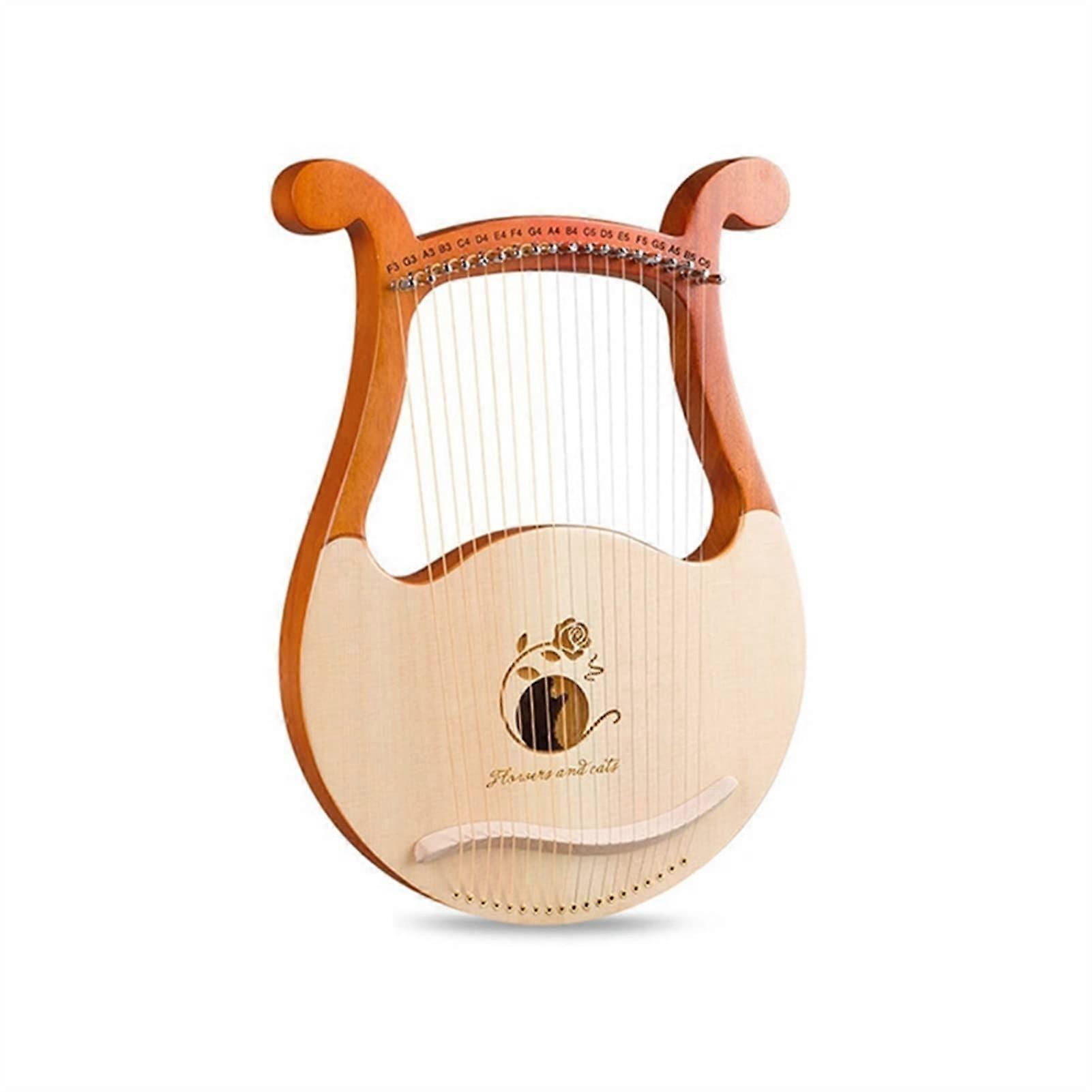 19 String Lyre Harp Mahogany Wood Classical Instrument with Tuning Wrench and Spare Strings