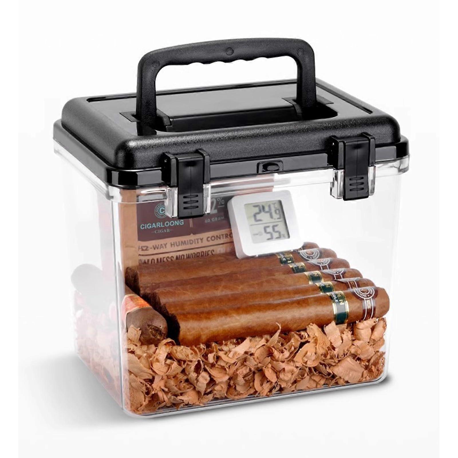 Cigar Humidor with Hygrometer, Transparent Airtight Travel Cigar Storage Box, PP Lightweight Design