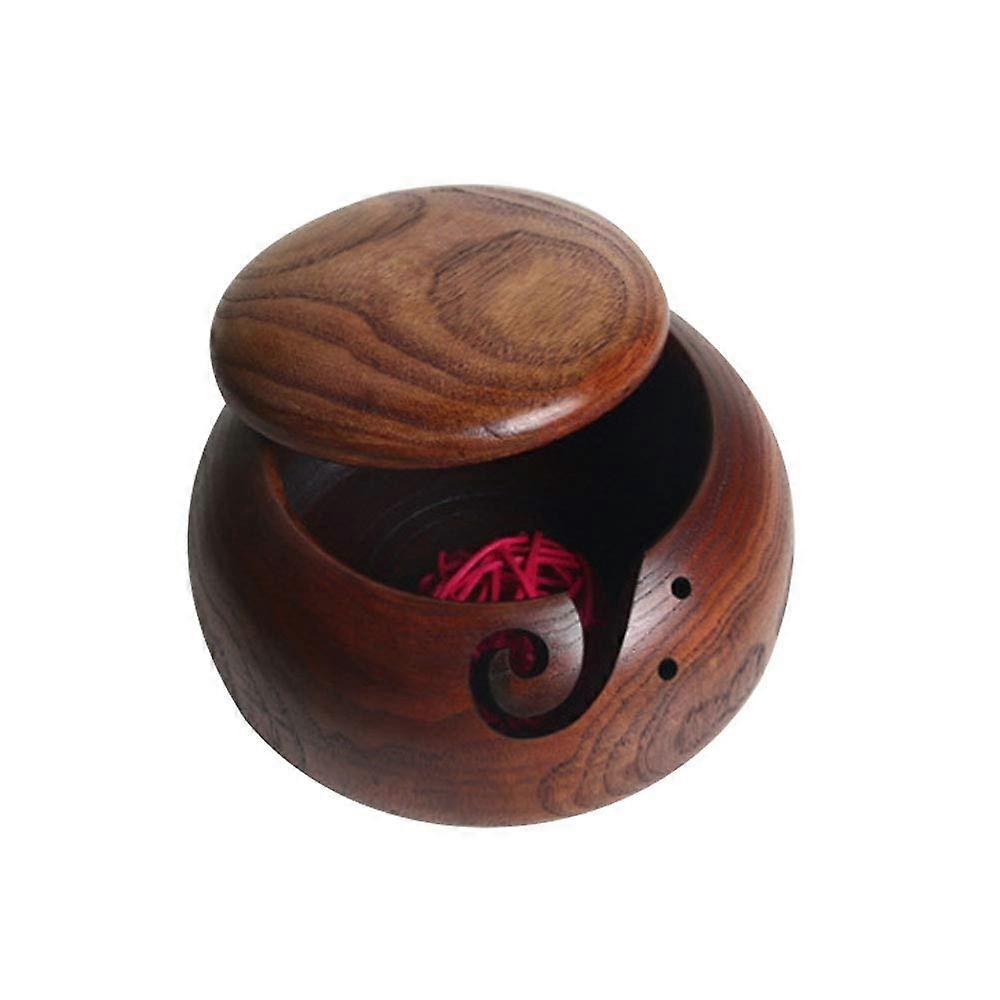 Wooden Yarn Bowl with Removable Lid Handmade Holder for Knitting and Crochet Tangle Feeding