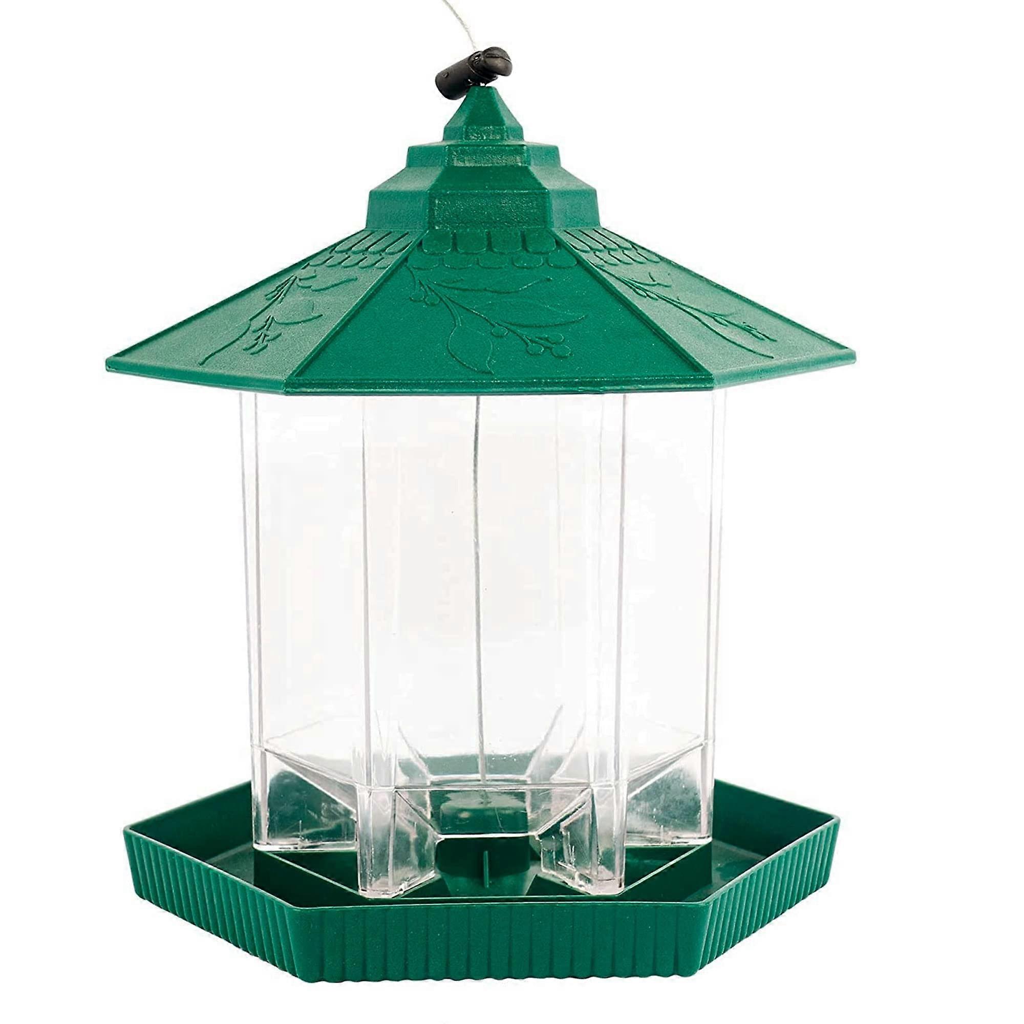 Green Gazebo Hanging Wild Bird Feeder with Hexagon Roof for Garden Yard Outdoor Decoration
