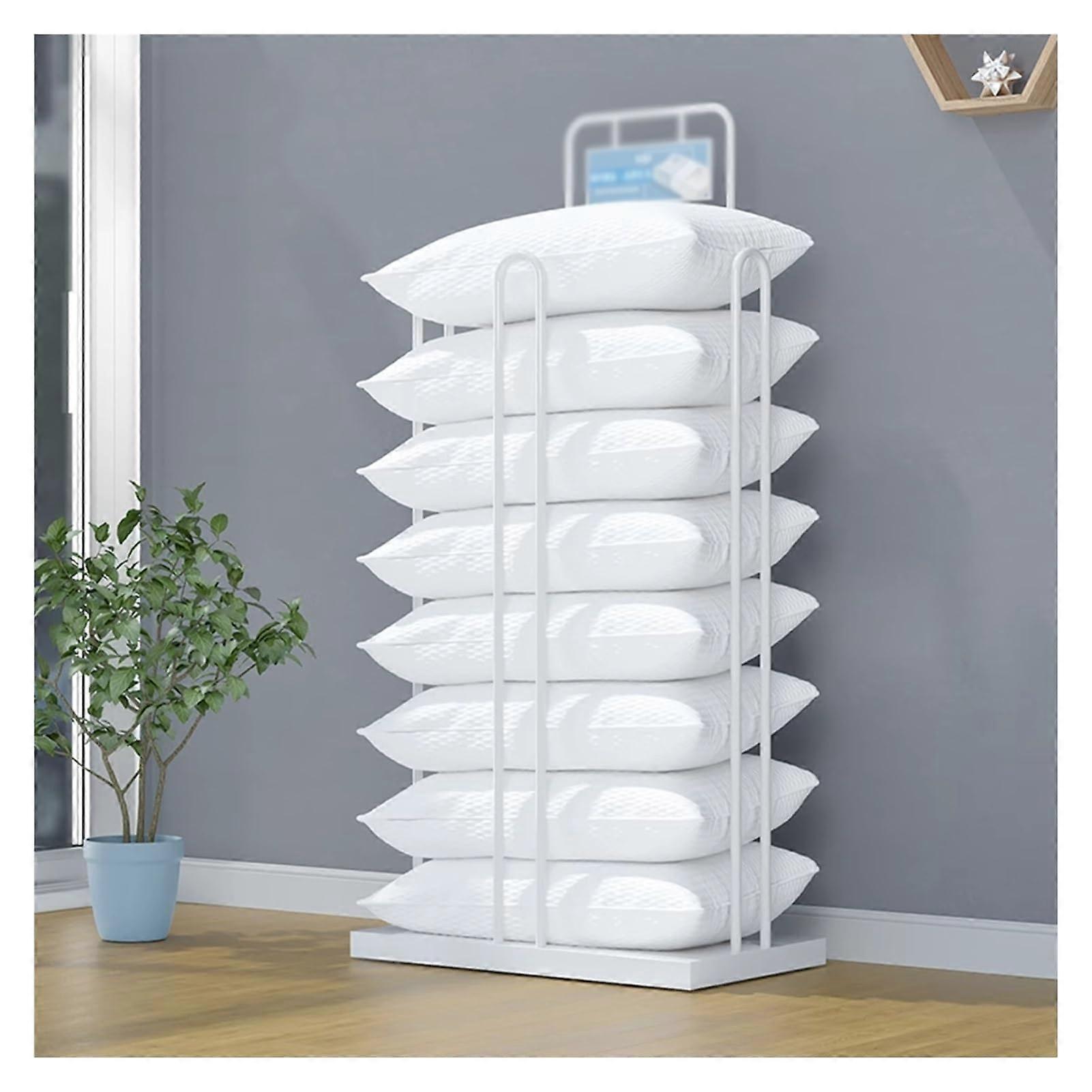 Tall Narrow White Storage Rack, Movable Metal Pillow Display Stand for Cushions A80x46x164cm