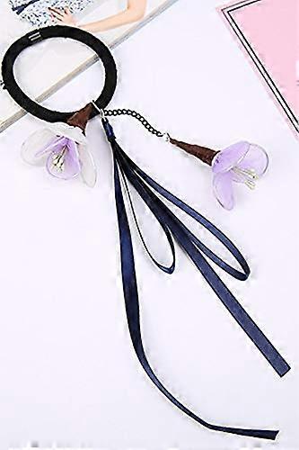 Hair Tie with Elegant Korean Flower Design, Purple Ribbon Ponytail Holder for Women