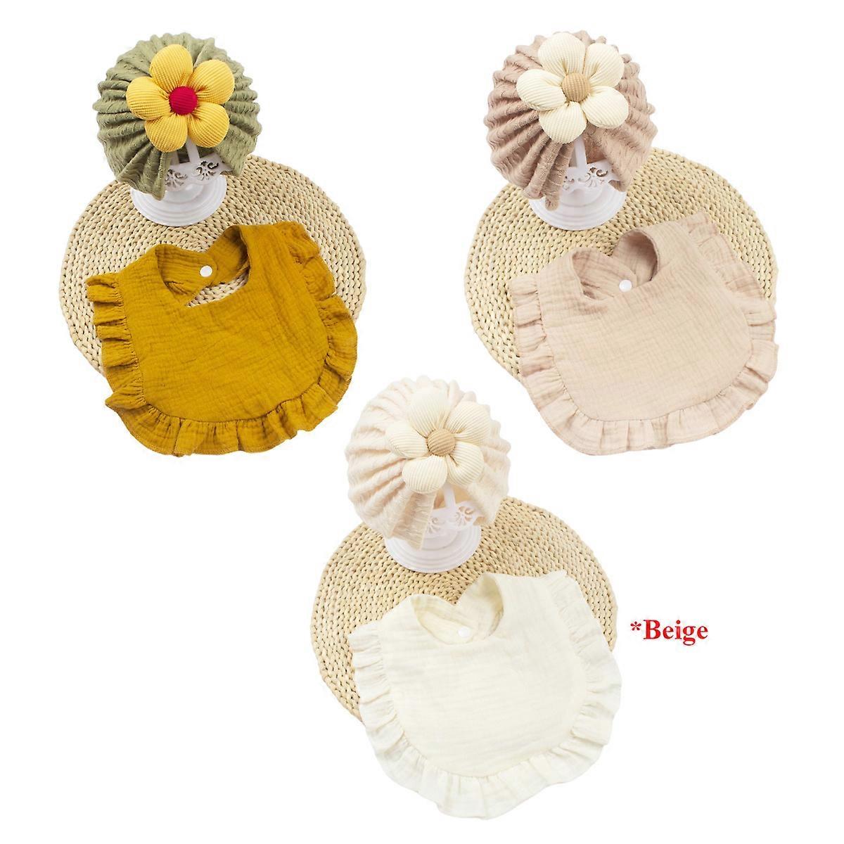 6Pcs Adorable Baby Floral TurbHat and Bib Set - Soft Ruffled Cotton with Delicate Floral Accents, Drool Towel Set, Newborn Gifts