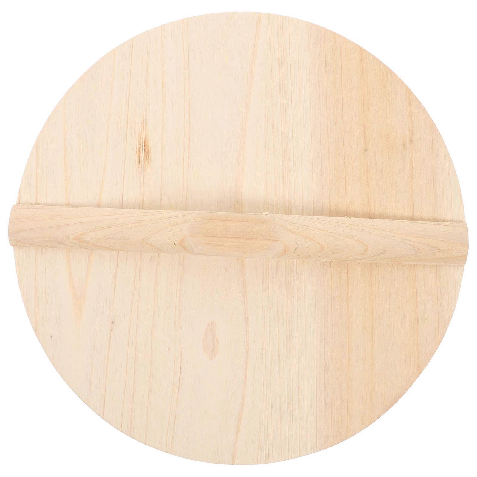 Wooden Wok Lid Cooking Pot Lid Family Gatherings Beige Wood Prevents Oil Splashing 1Set