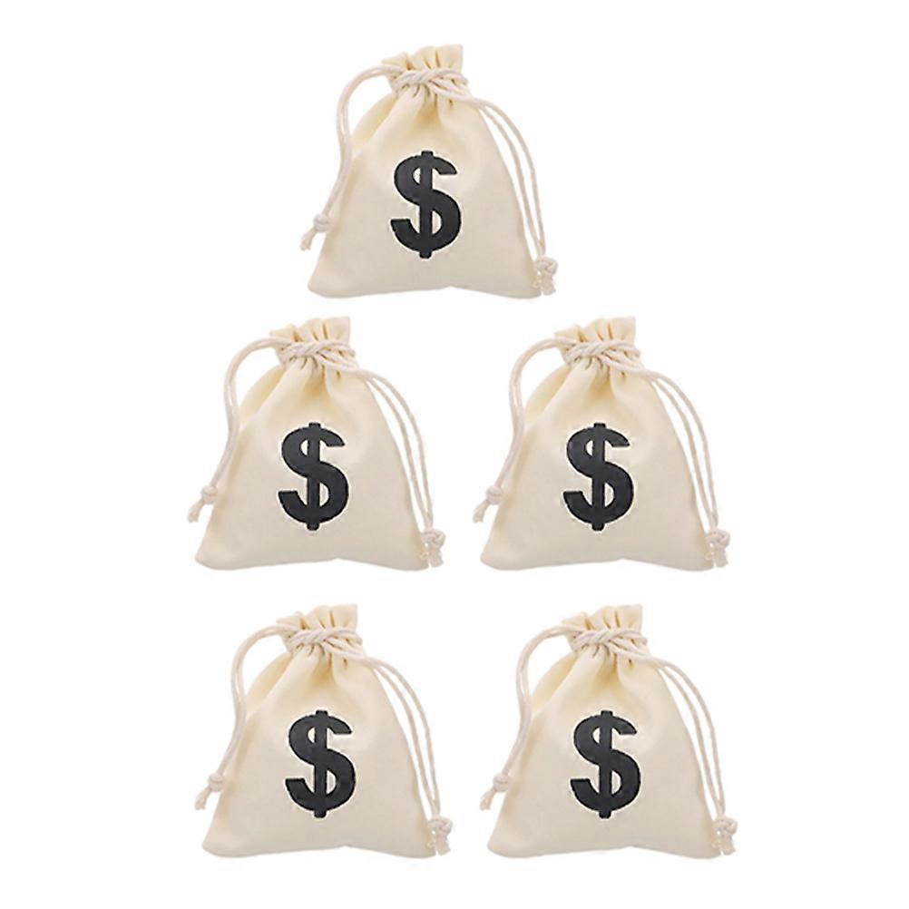 Canvas Money Bags with Drawstring Closure for Storage Use 5Pcs Beige Halloween Prop