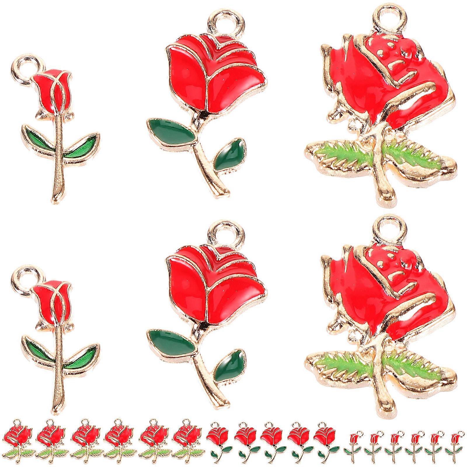 Red Rose Pendants Metal Charms for DIY Jewelry Making 30Pcs Set