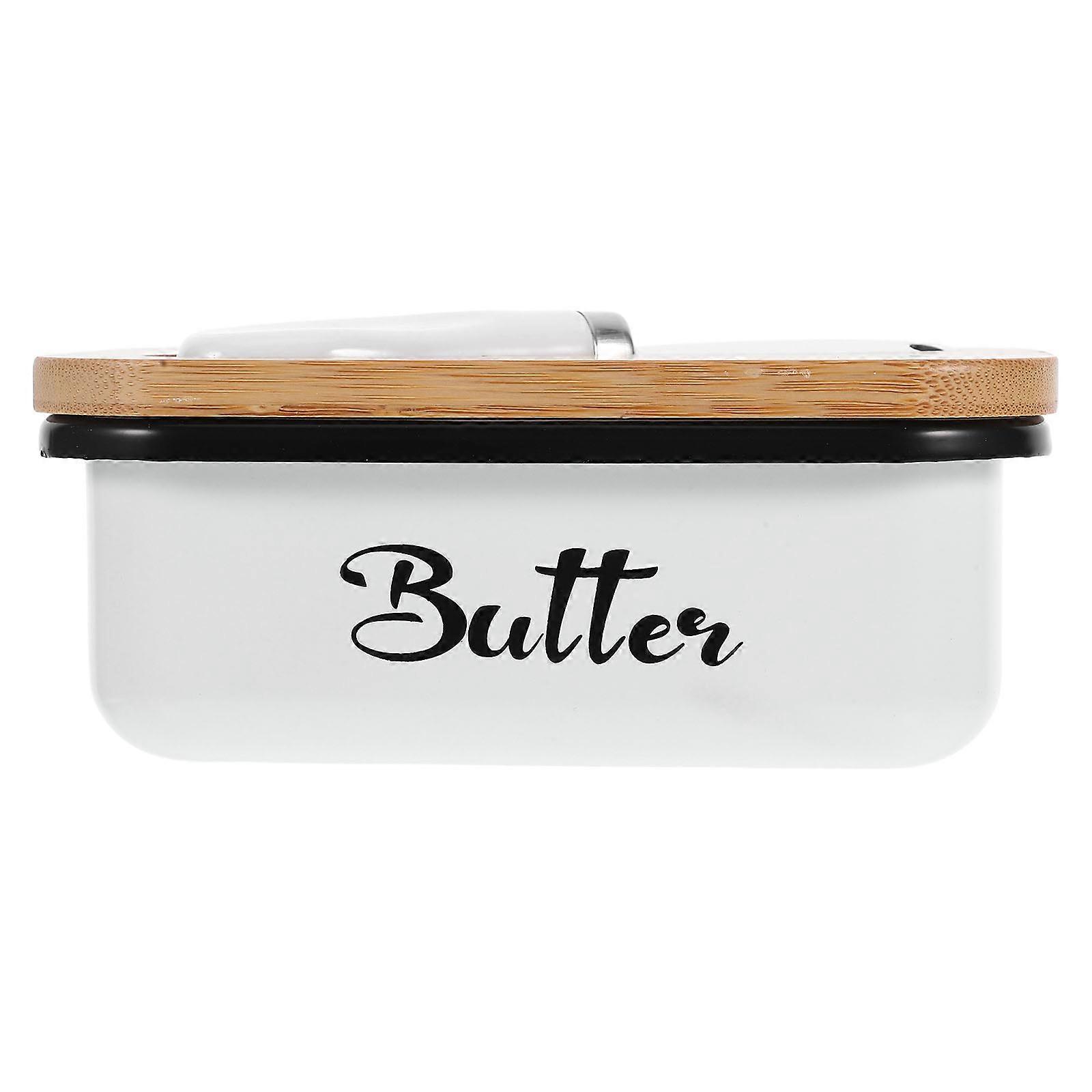With its sturdy construction and airtight seal, this dish is Suit for keeping your butter fresh and spreadable. The lid fits snugly to prevent any unwanted odors from seeping in, making that your butter remains delicious. Its classic design makes it a great addition to any farmhouse-style kitchen. Features -Color:White -Material:Iron, bamboo, stainless steel -Size:15.50X10.50X6.00cm/6.09X4.13X2.36in - freshness: keeps butter fresh and delicious for extended periods -Protective seal: provides an airtight seal to prevent and maintain freshness -Multiple uses: Suit for storing butter, cheese, and other foods, enhancing its practicality -Elegant design: the simple and stylish look matches any home decor, making it an essential kitchen item -Easy cleaning: easy to use and clean in the kitchen Package list: 1 x Butter Dish