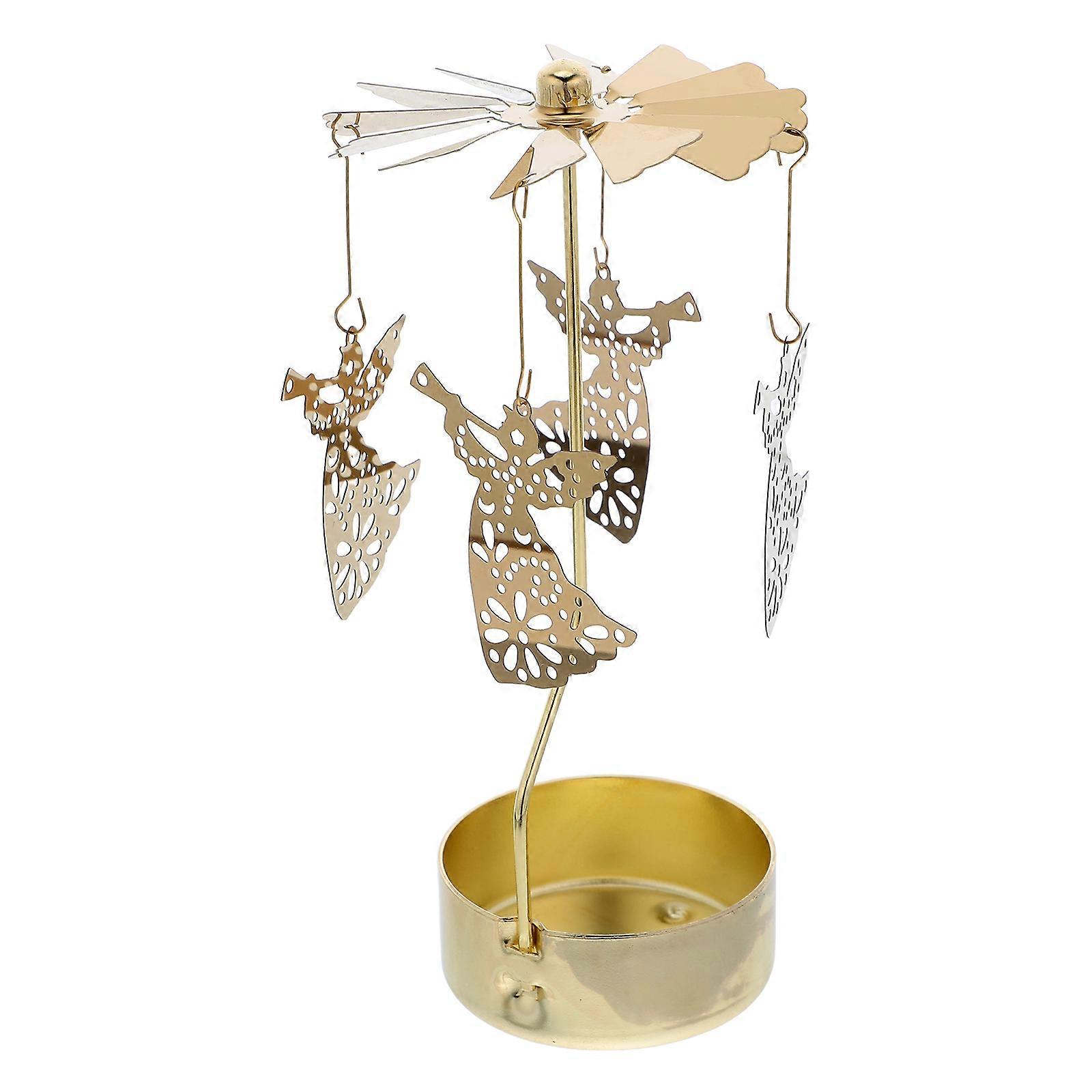 Golden Rotary Candle Holder Metal Carousel for Valentine's Day Decor