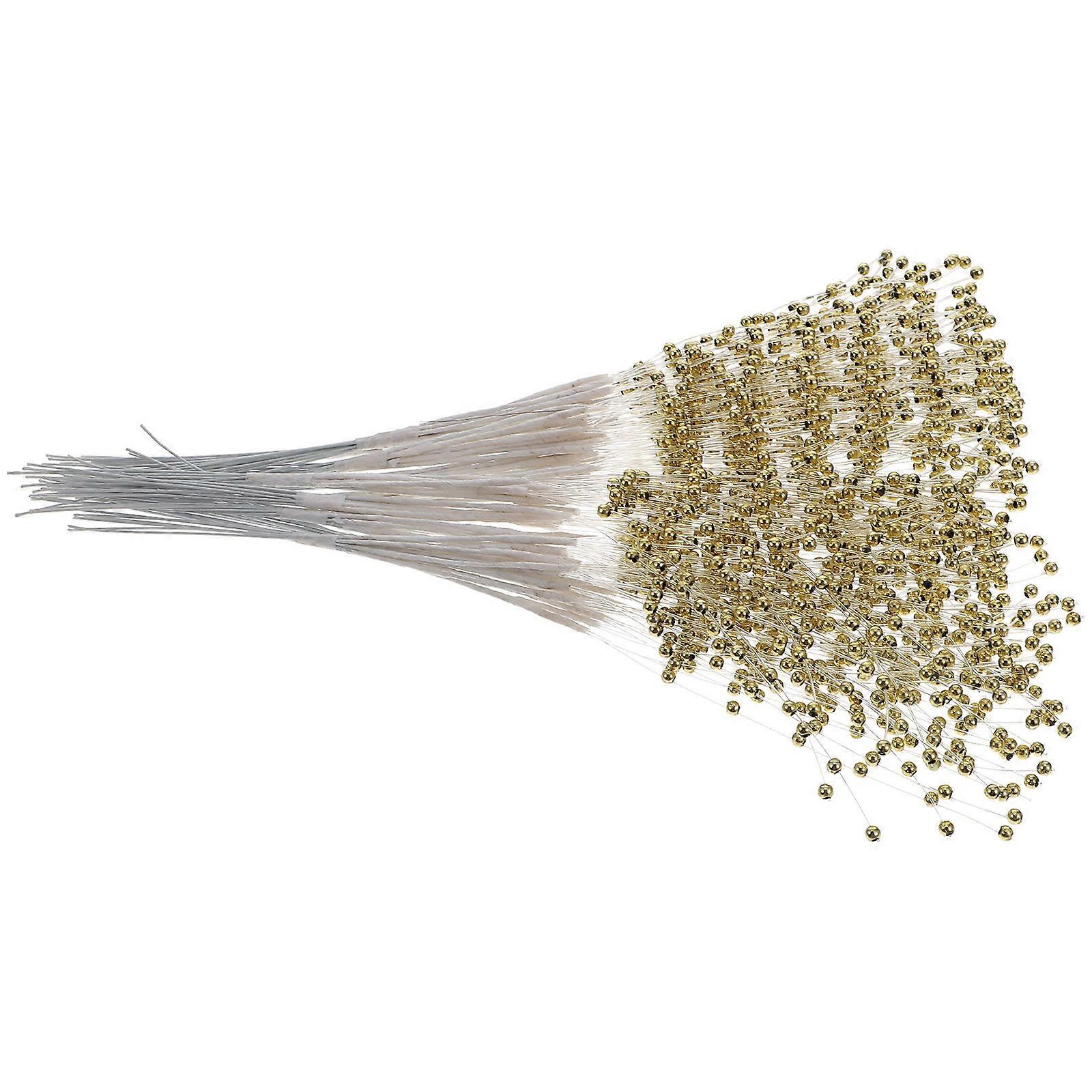 200Pcs Plastic Pearl Sticks for Wedding Bridal Bouquet Decoration in Gold
