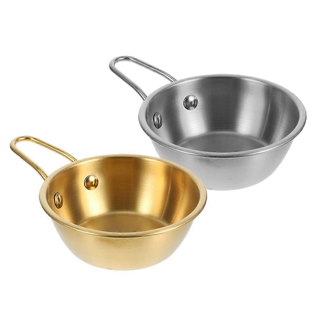 Korean Rice Wine Bowls with Handle Stainless Steel for Outdoor 2Pcs