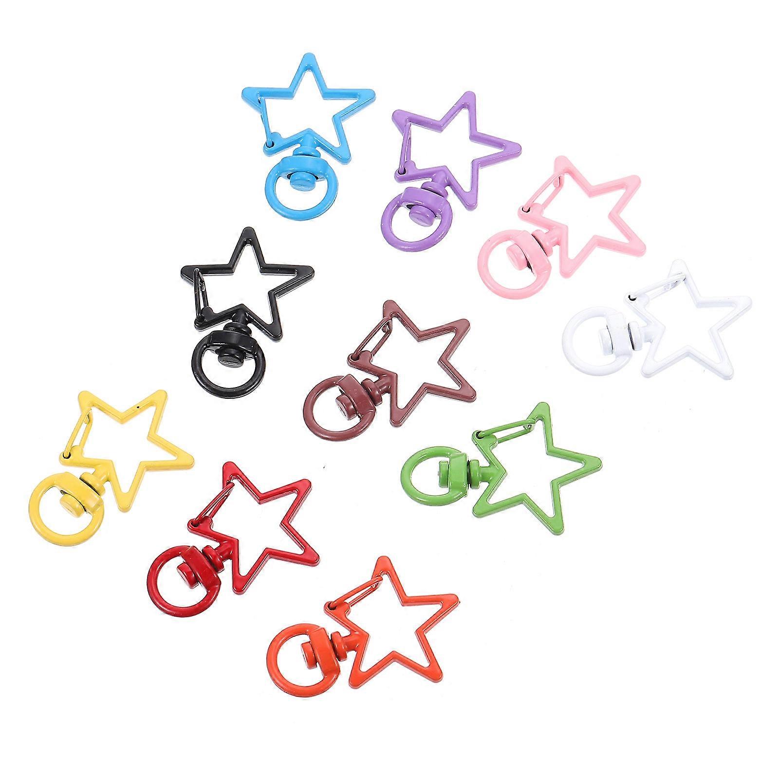 Alloy Clasps Five-Pointed Star Key Ring Buckle Keychain Anklet Cellphone Decorative Accessories Assorted Color 3.50X2.40X0.50Cm 10Pcs