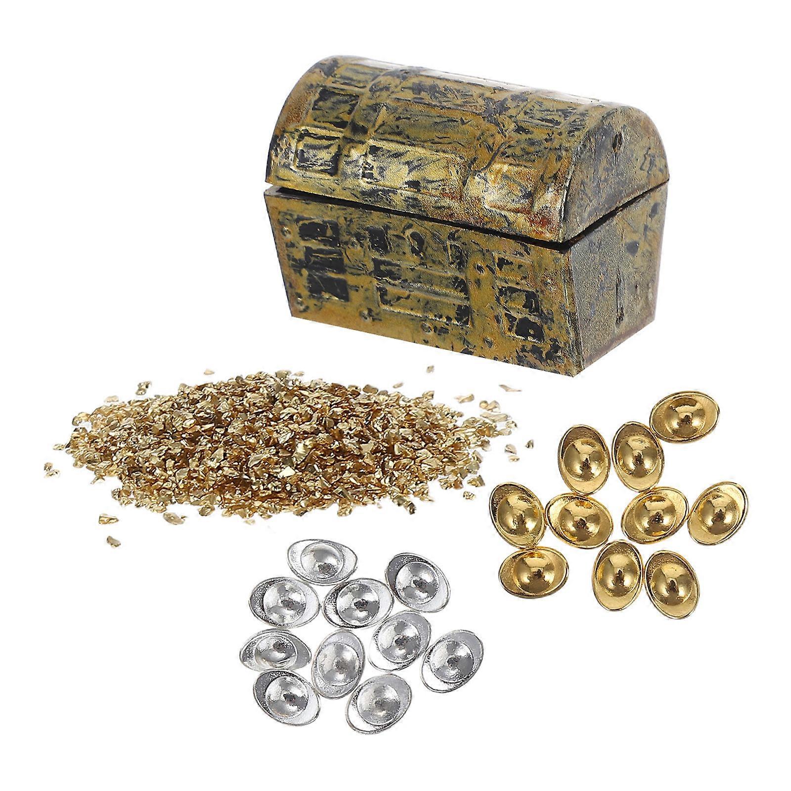 Miniature Dollhouse Treasure Chest Ornaments for Play 1Set Golden Alloy