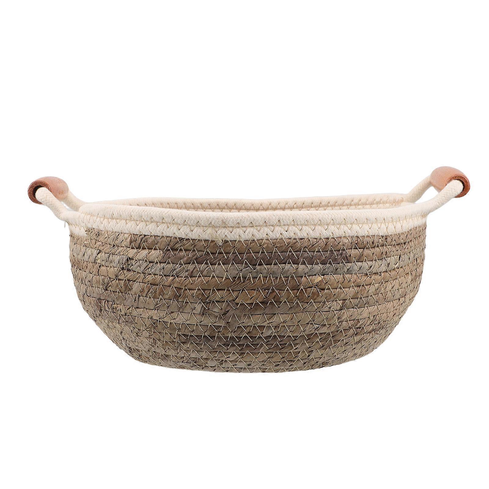 Wicker Handle Basket Round Storage Basket for Storage Brown Straw