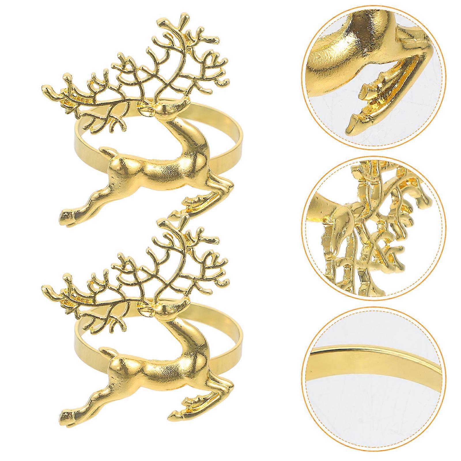 Golden Christmas Napkin Rings Deer Napkin Rings for Decor 6Pcs Alloy