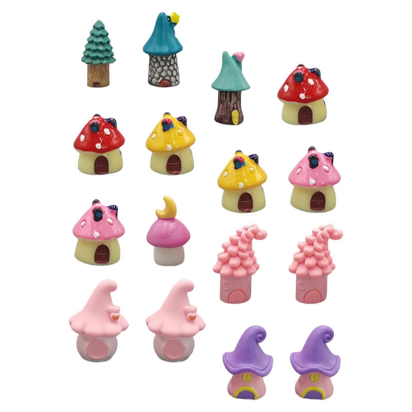 Resin Miniature Mushroom House Figurines for Dollhouse Decor 16Pcs