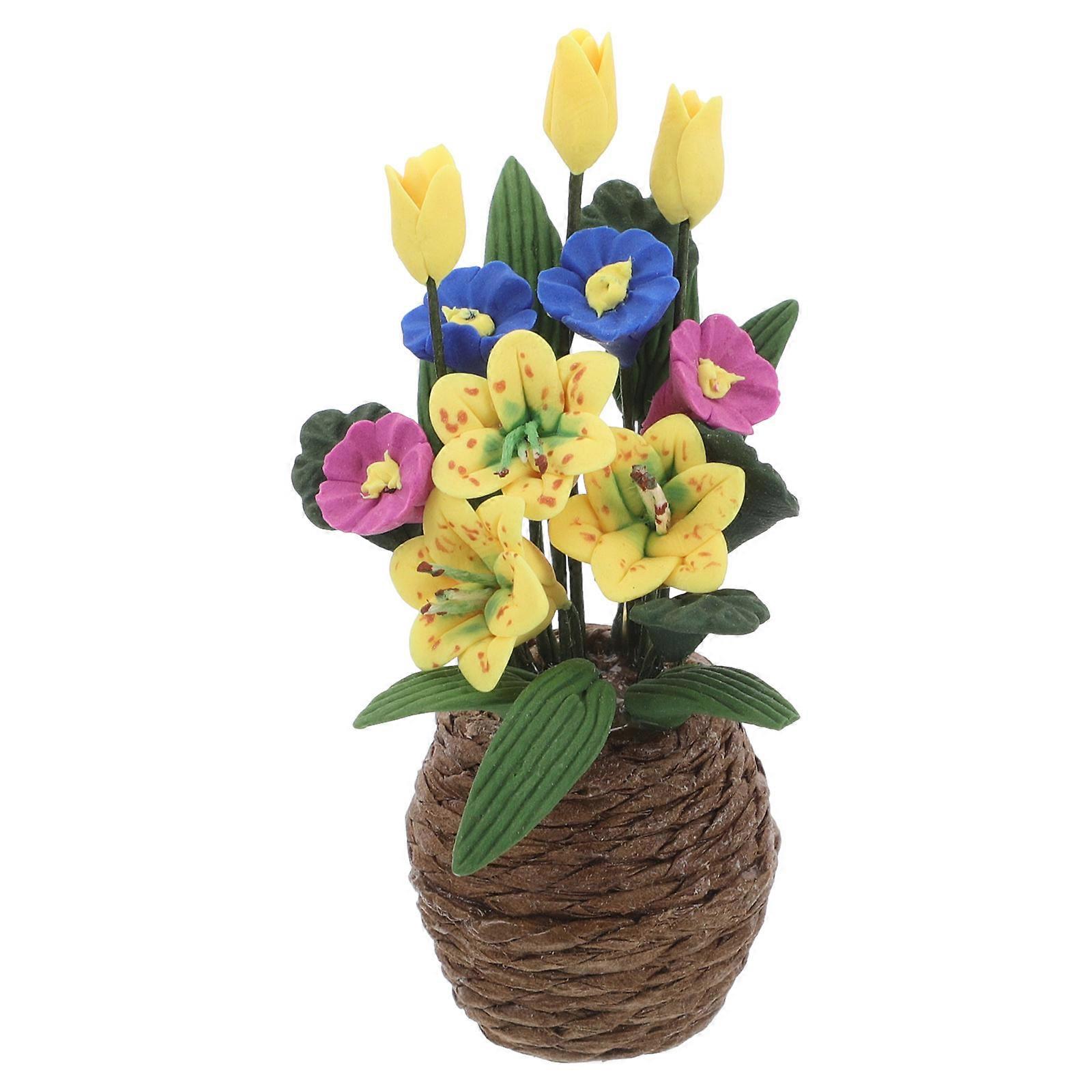 Dollhouse Potted Plants Miniature Flower Lily Plant Resin Decoration for Dollhouse