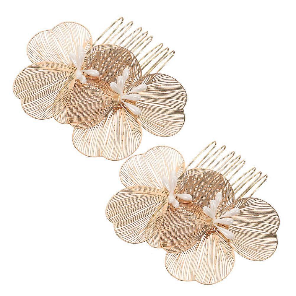 Golden Flower Hair Comb Clip for Women 2Pcs Elegant Wedding Hairpins