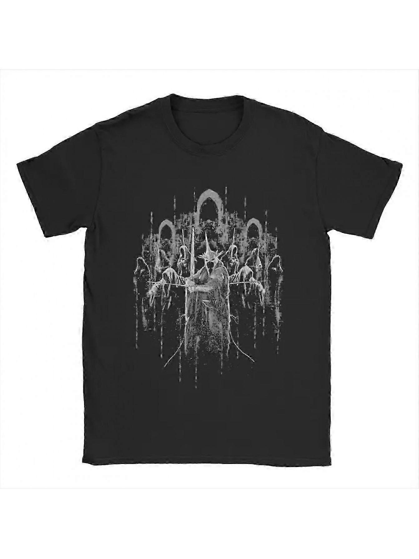 Men's Black Cotton T-shirt With Intricate White Print Design - Bohemian Style, Short Sleeve, Round Neck, Perfect For All Seasons, -sxvnz190 GZDGV