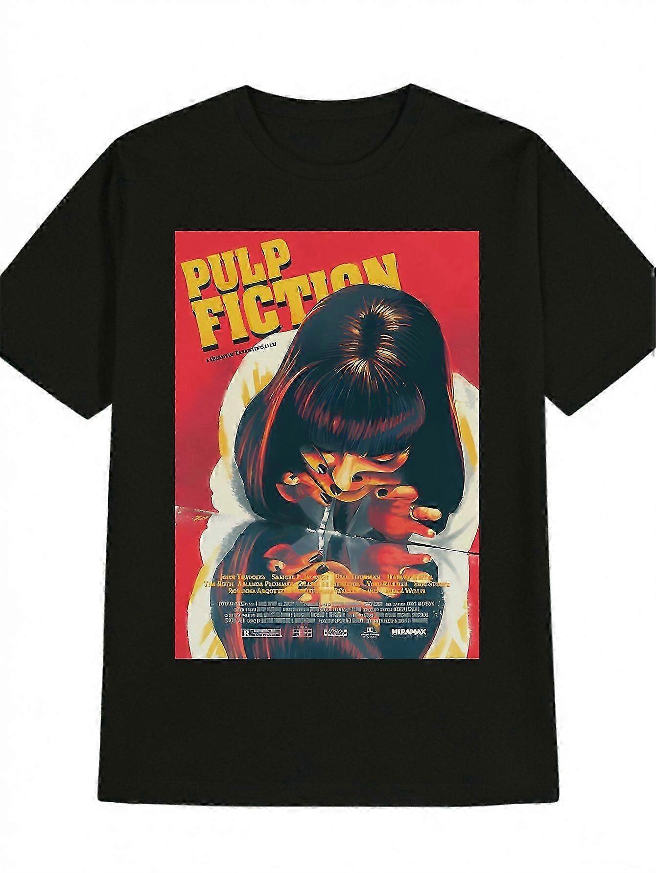 Men's Casual Graphic T-shirt- Pulp Fiction Movie Art Print With Female Character Design, Black Round Neck Summer Tee, Machine Wash-sxvnz186 GZDGV