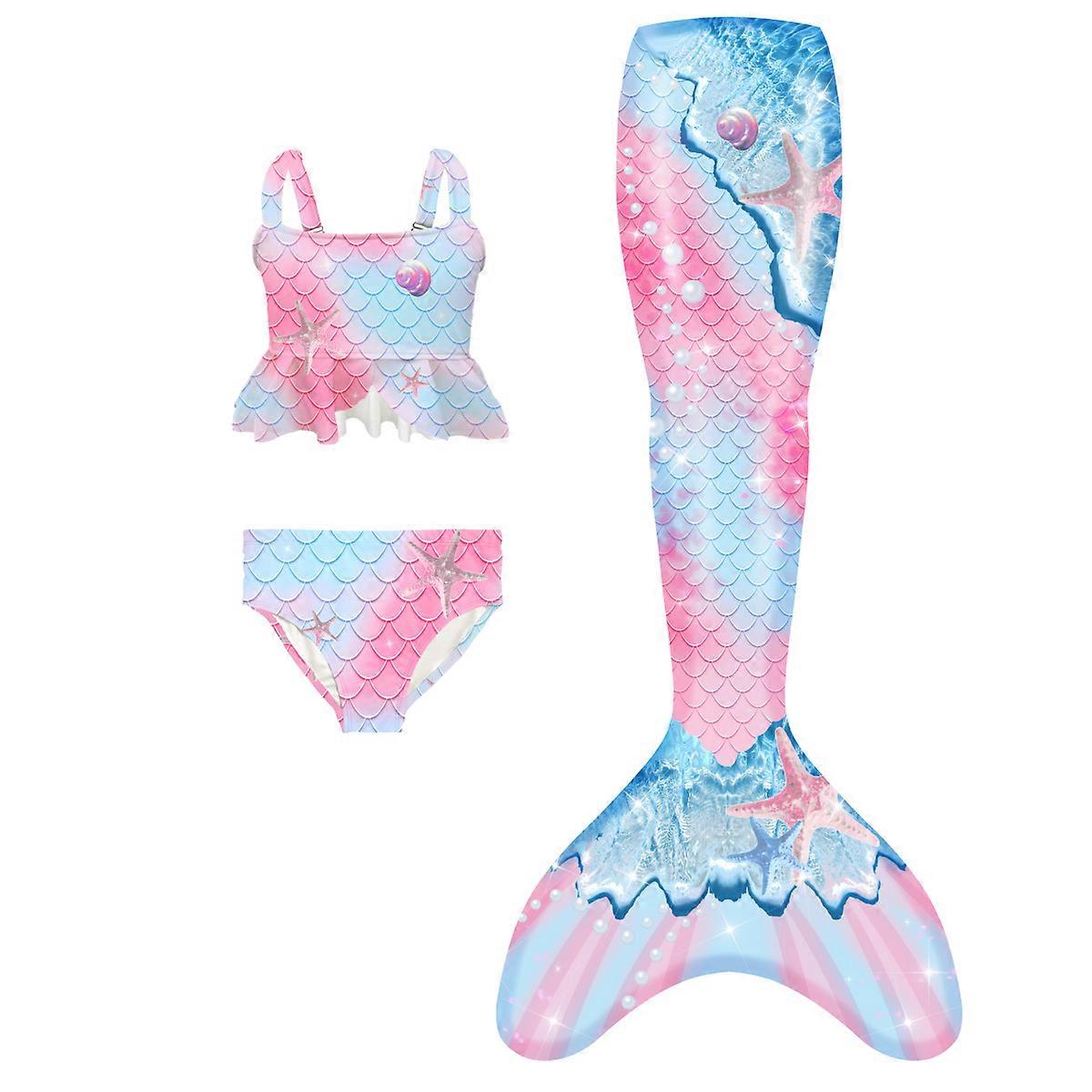irls Mermaid Swimsuit 3-Piece Set Kids Princess Bikini Swimwear UV Protection Age 2-8 Summer Beach